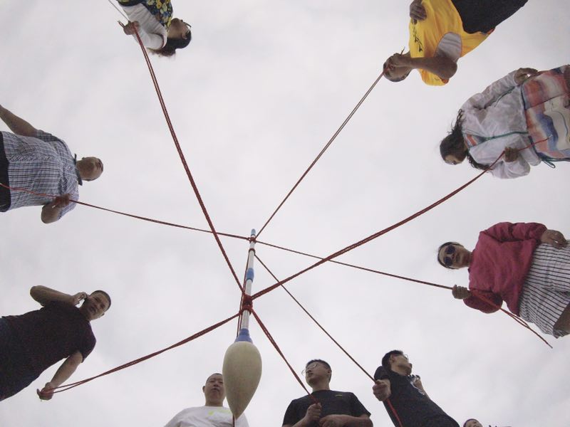 拓展第一個活動是穿越A4紙,要求將A4紙撕成閉合的形狀,可讓全體隊員同時穿越,即為完成項目。組員們充分開動大腦,經過多次討論與嘗試,在給予的2次機會均失敗后,繼續(xù)鍥而不舍,申請給予第3次機會,終于在30分鐘后成功該項目。